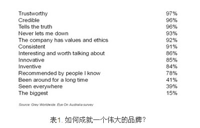 ASN和Triodos都提供可持续的明确的选择,消费者因此而喜欢它们,因为他们感觉到了诚实、可信和可靠。近期的调研确着无疑地显示‘可靠’,‘可信’和‘说真话’是成就伟大品牌三个最重要的因素(见表1)。正是客户体验促成了以下感知。